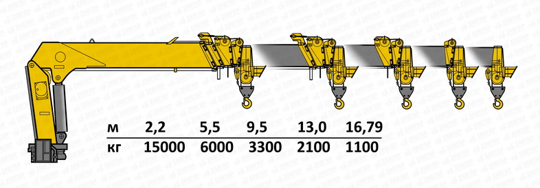 | Грузоподъемность КМУ, кг | 15000 |