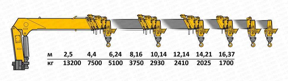 Кран-манипулятор XCMG SQZ330-6 является мощным и высокотехнологичным оборудованием с грузоподъемностью до 16 500 кг и грузовым моментом 33,3 т·м. Максимальный вылет стрелы составляет 16,37 метра, что позволяет работать с грузами на значительном расстоянии от автомобиля. Максимальная высота подъема достигает 18,5 метра, благодаря чему кран справляется с задачами на большой высоте. Угол подъема стрелы равен 84°, обеспечивая широкую амплитуду работы. Кран может вращаться непрерывно на 400°, что дает возможность максимально эффективно маневрировать на стройплощадке или в ограниченном пространстве. Для повышения устойчивости при работе предусмотрены передние переворотные аутригеры с вылетом 7,8 метра.